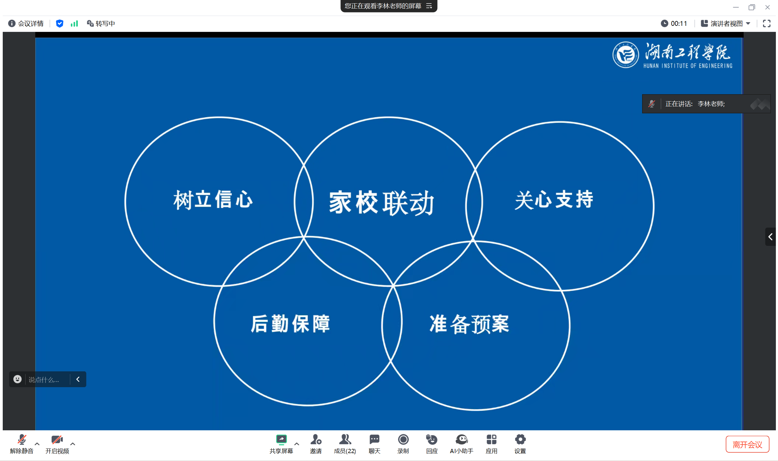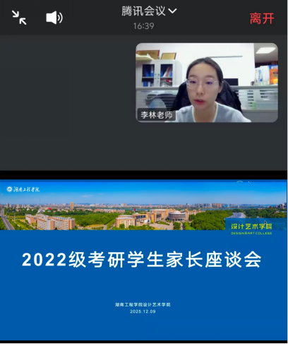 为凝聚家校合力,为考研学子筑牢保障,12月9日,设计艺术学院举行了2022级考研线上家长会。此次家长会由22级辅导员李林主讲,22级考研学生家长积极参与,共同为学子升学发展出谋划策。