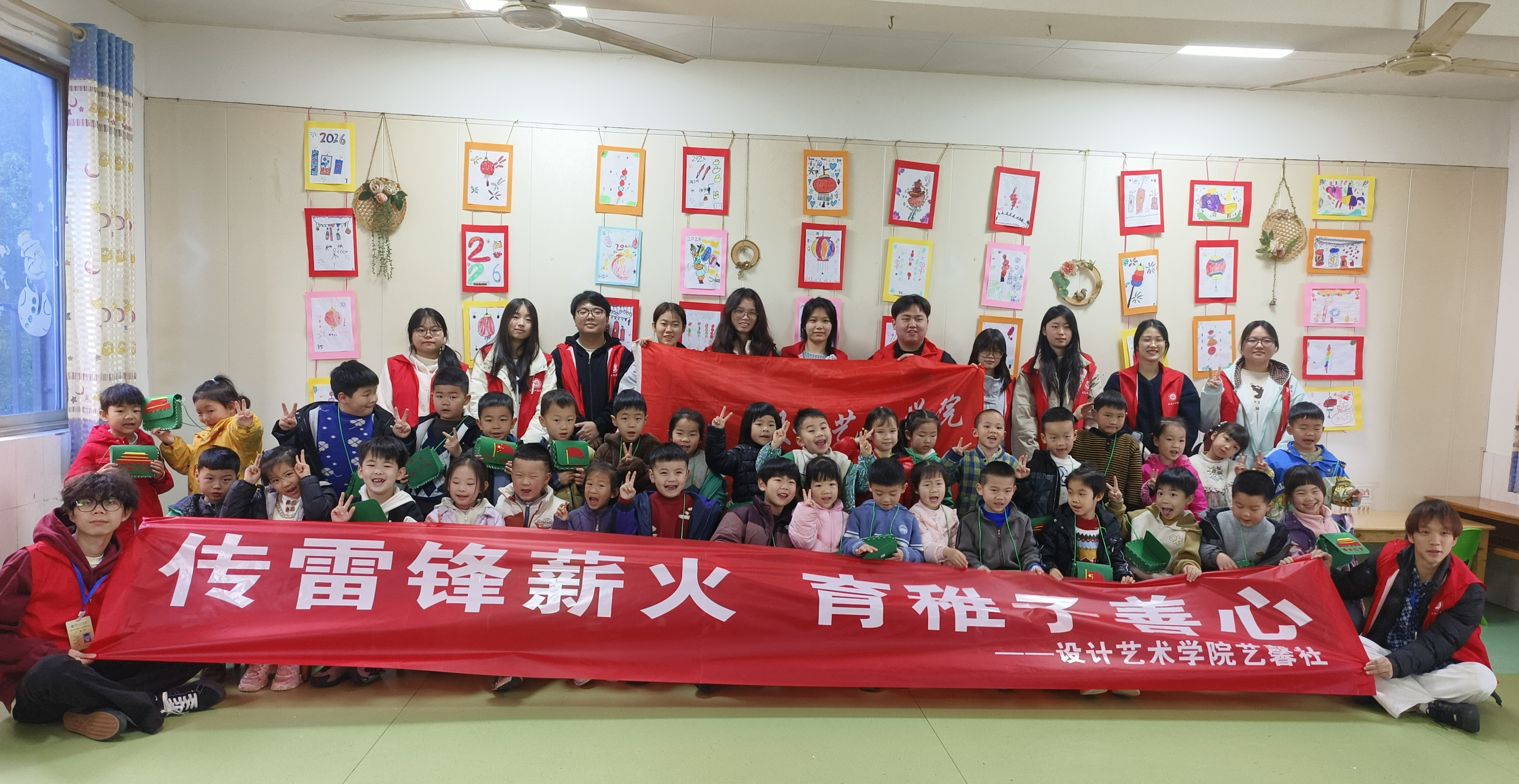 为传承和弘扬雷锋精神,在孩子们心中播撒乐于助人、甘于奉献的种子,在学院“雷锋月”系列志愿活动开展之际,3 月 24 日上午,设计艺术学院艺馨社组织志愿者走进花地幼稚园,开展以 “传承雷锋薪火,育稚子善心” 为主题的学雷锋志愿活动,学院志愿者们以专业的创意思维和生动有趣的形式,带领小朋友们沉浸式感悟雷锋精神的深刻内涵。