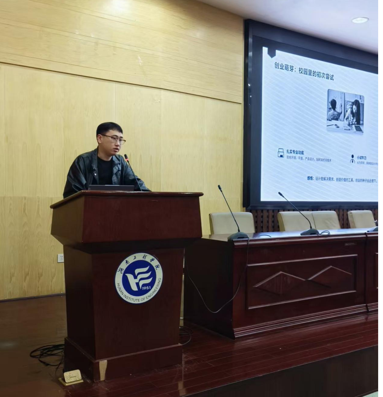 学长引路,详解创业实践。徐圣学长身为环境设计2202班班长,深耕多设计领域,现任湘潭市艺设工坊设计工作室创始人等职,兼具多重实践经历,是在校学子的优秀标杆。他聚焦创业全流程,从项目起步、团队搭建、资源整合到落地执行,毫无保留分享在校创业实操方法与避坑指南,用真实案例还原创业“从0到1”的全过程,让同学们清晰掌握落地关键。
